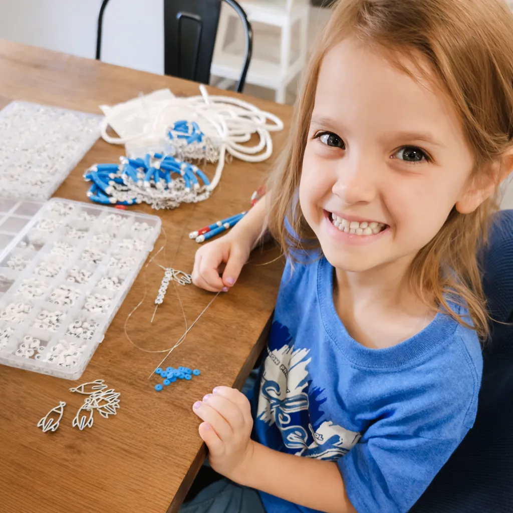 With the help of their big brother, bestie mama, and veteran daddy, the girls (at ages 2 and 4) began spending hours designing bracelets, packaging orders, and dreaming up new creations. Soon, they were popping up at local markets and vendor fairs around Waco, proudly selling their beaded bracelets and later expanding into permanent jewelry at events.