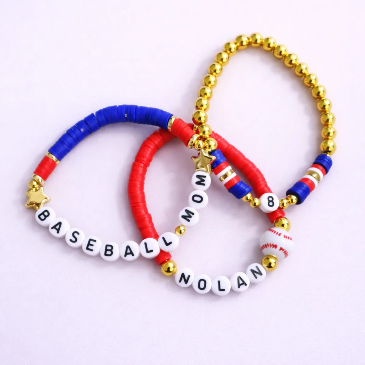 Show your team spirit! Custom bracelets for baseball, softball, soccer, cheer, and all sports moms.